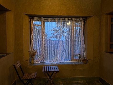In June, there was a different sound that enveloped the space. A sound of deep silence, the chirping of crickets and birds and that of rain that just didn’t seem to stop. Compared to the 25-30 people that we encountered in January, now stood just the three of us outside the main building hearing countless stories from Parul who showed us around the beautiful campus enlightening us with many stories of the space and how it came together.